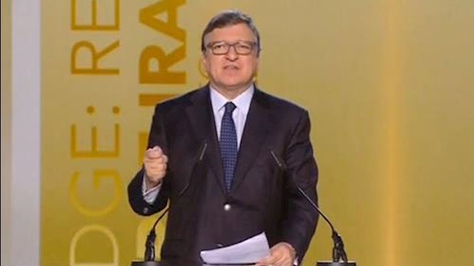باروسو با اشاره به توافق اتمی اخیر گفت: بهتازگی یک توافق اتمی که آمریکا و اتحادیه اروپا بر سر آن با رژیم ایران معامله کردند بهدست آمد. من خواهان یک تعامل با حفظ اصول هستم نه بدون حفظ اصول. یعنی با احترام به آزادی و اصول دموکراسی.