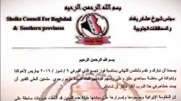 شورای عشایر بغداد و استانهای جنوبی عراق با صدور بیانیه‌یی، ضمن تبریک برگزاری موفق گردهمایی۹ ژوئیه در پاریس و قدردانی از افشای توطئه‌ها و دخالتهای رژیم آخوندها در عراق و سوریه و سایر کشورهای منطقه، خواهان تضمین حفاظت مجاهدان اشرفی در لیبرتی شد.