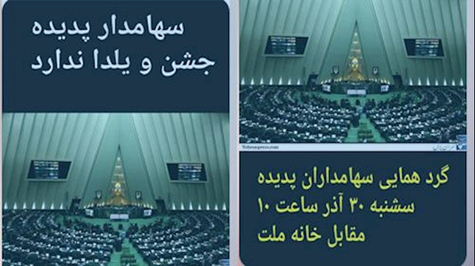 غارت شدگان مؤسسه پدیده اعلام کردند روز سهشنبه 30آذر در مقابل مجلس ارتجاع تجمع اعتراضی برگزار خواهند کرد. یکی از غارت شدگان پدیده گفت: دیماه سال 93 ناقوس بحران و بدبختی سهام داران پدیده توسط علی صادقی دادستان رژیم در مشهد نواخته شد و باعث هرج و مرج در یک بنگاه اقتصادی بزرگ و سهامداران خرد گردید. لذا برای آرام نگهداشتن مردم تعهدنامههایی تنظیم گردید که بعد از هفت ماه تبدیل به پول بشود. متأسفانه این اتفاق نیفتاد و یلدای سال 94 طلبکاران پدیده در شب یلدا بهجای آجیل شب یلدا و میوه در سفرههای خالی تعهدنامه را قرار دادن و چند روز دیگه تا یلدای 95 باقی نمانده و دوستان همگی مستحضر هستن بسیاری از عزیزان در کنار خانواده نیستن یا بهعلت بدهکاری در گوشهیی از زندان بهسر میبرند و عدهیی بهعلت بحرانهای روحی و روانی بیمار بیمار و در بیمارستان بهسر میبرند و تعدادی هم از عزیزان برای همیشه از میان ما رفتند لذا افرادی هم که در کنار خانوادههایشان هستن امسال شب یلدایی نخواهند داشت آیا وقتش نرسیده است که کارگزاران رژیم گوشه چشمی به این دردمندان و گرفتاران پدیده بیندازند؟.