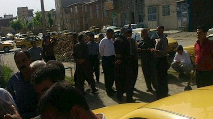 رانندگان تاکسی در بوکان به همراه تاکسیهای خود در مقابل ساختمان تاکسیرانی بوکان تجمع اعتراضی برگزار کردند.