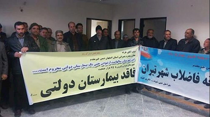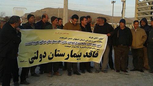 بنا به گزارشهای دریافتی روز پنجشنبه 14بهمن 95 جمعی از مردم شهرستان ۷۵ هزار نفری تیران و کرون واقع در 45 کیلومتری اصفهان در اعتراض به نداشتن بیمارستان دولتی در این شهرستان تجمع کردند.