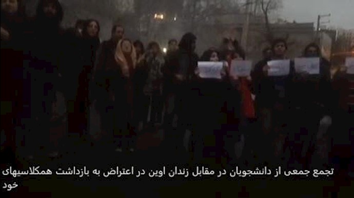 جمعی از دانشجویان همراه با خانوادههای بازداشتشدگان روزهای اخیر؛ شنبه شب ۱۶دی ماه؛ با تجمع در مقابل زندان اوین و خواندن ترانه یار دبستانی با یاران بازداشت شده خود اعلام همبستگی کردند. آنها به بازداشت دانشجویان که پس از قیام سراسری اخیر در شهرهای ایران بازداشت شدهاند اعتراض دارند. آنها پلاکاردهایی در دست دارند که روی آنها نوشته شده است: جای دانشجو زندان نیست یاران دبستانی را آزاد کنید.