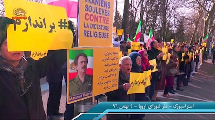تظاهرات هموطنان و یاران اشرفنشان همزمان با حضور رئیسجمهور برگزیده مقاومت - مجمع پارلمانی شورای اروپا - استراسبورگ + فیلم