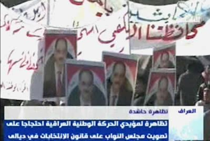 در این گزارش آمده است: جنبش ملی عراق شعبه دیالی با برگزاری تظاهرات بزرگی با مشارکت هزاران تن از شهروندان، تصویب قانون انتخابات توسط پارلمان را که در آن سهمیه کرسی برخی استانها کم شده مورد اعتراض قرار دادند. تظاهر کنندگان عملکرد پارلمان در نحوه رأیگیری بر سر قانون تعدیل شده انتخابات را محکوم کردند کما اینکه از این شیوه برخورد با موضوعات سرنوشت ساز ابراز انزجار نمودند. تظاهر کنندگان از اعضای پارلمان خواستند تا در حفظ حقوق آنها در رأیگیری و حذف نکردن آنها احساس مسئولیت قانونی و اخلاقی بنمایند.